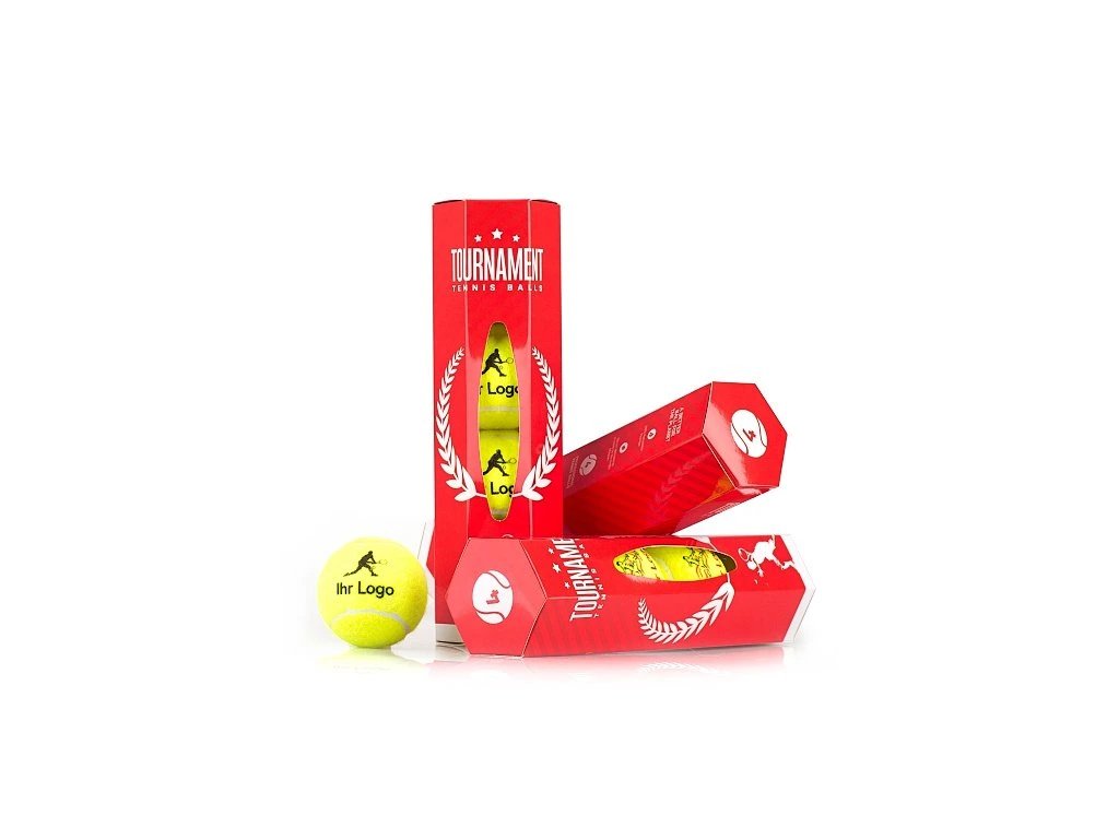 Der Turnierball mit Kundenlogo ist ein geeigneter Ball für Tennisvereine, Amateur- und Profispieler, zur Organisation eigener Turniere, für Firmenpräsentationen oder als ausgefallenes Geschenk für Ihre Kunden. Der Ball ist in erster Linie für Turniere gedacht und erfüllt die Anforderungen der International Tennis Federation (ITF). Der Ball ist für alle Oberflächen gedacht. Zur Auswahl stehen klassische gelbe oder retroweiße Bälle. Sie können die Verpackung in einer speziell entwickelten roten ECO-Tube für 4 Stück Kugeln wählen. Turnierbälle können in ihrer Verpackung 9 Monate haltbar sein, ohne ihre Eigenschaften zu verlieren.